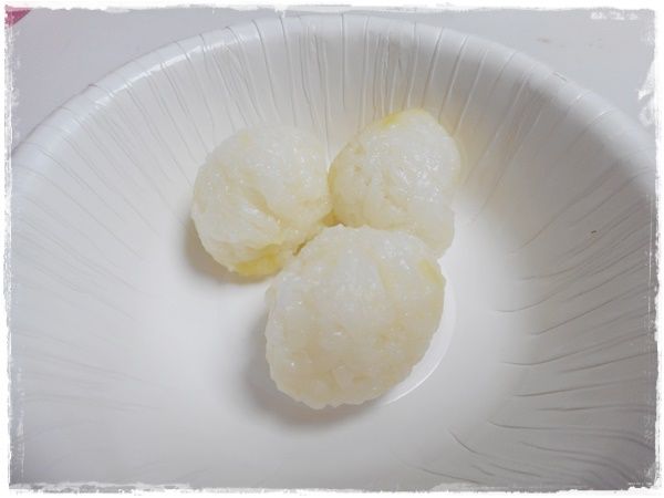 2.ラップでおにぎりに。ラップを外して器に盛る