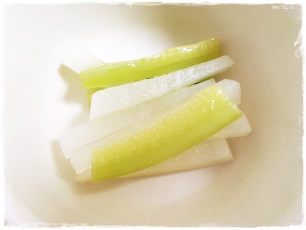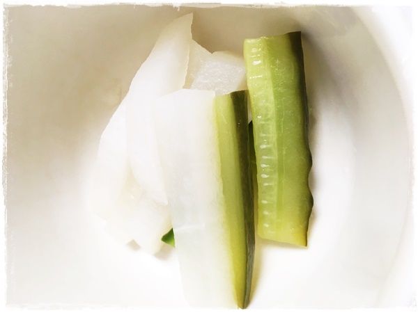 2.合わせ酢にきゅうりと大根を30分以上漬け込む