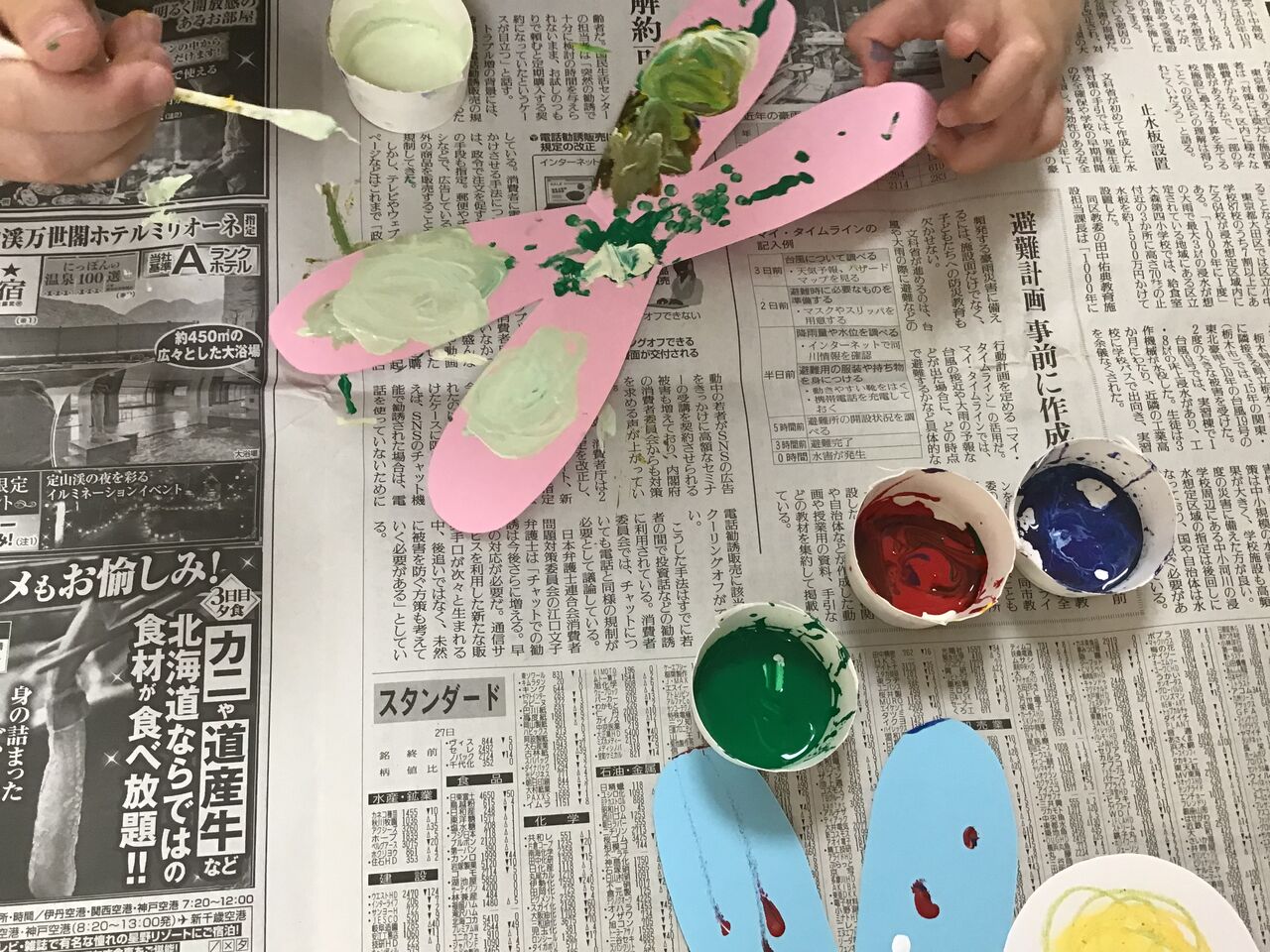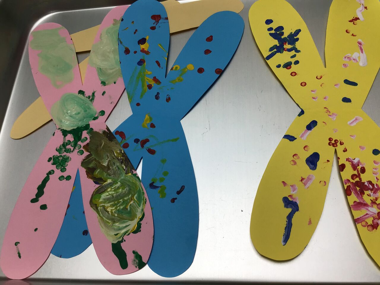 『トンボのメガネは水色眼鏡~』って歌いながら、自分たちの作ったトンボやお散歩で出会ったトンボを指差ししていました。