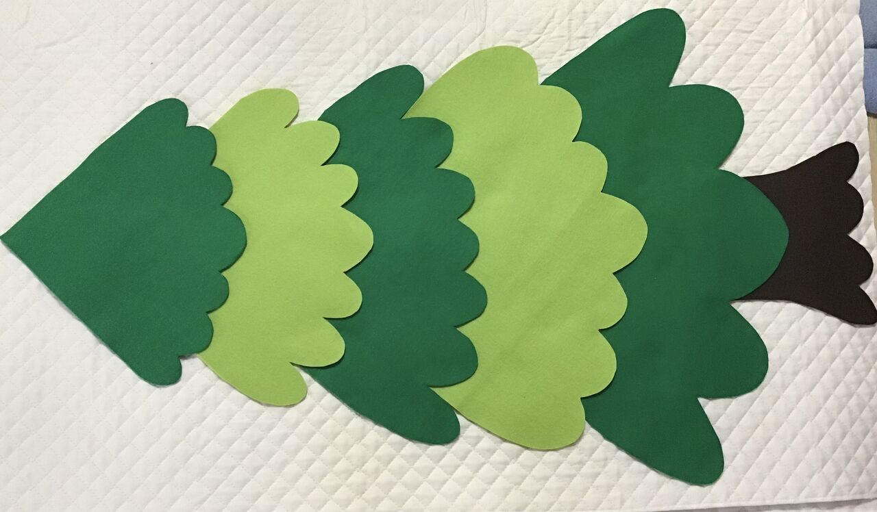 この型紙は、壁に貼るときの大きさや、ツリーの材料になるフェルトの大きさに合わせるといいと思います。